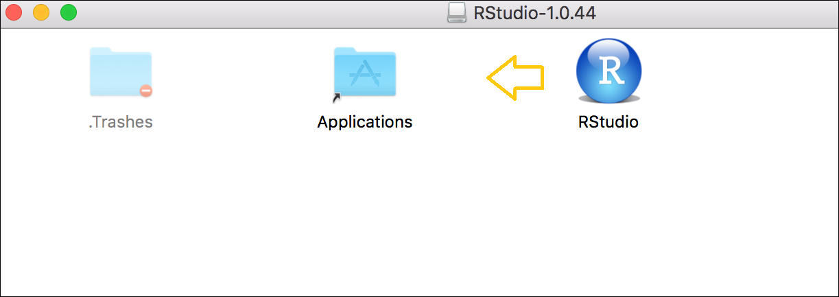 4. Drag the RStudio icon into the Applications folder